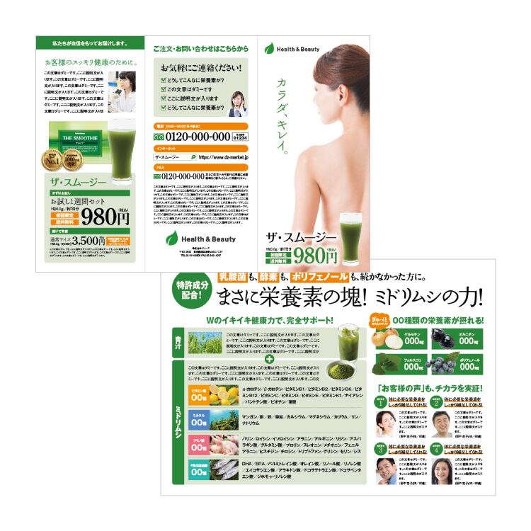 当サイトに掲載されている広告サンプルは画像を配置したイメージであり、納品させていただくデザインデータには、画像が含まれていません。納品後に、お客様側で画像を配置してご活用ください。配置している画像も含めてご使用になりたい場合は、別途お問い合わせください。